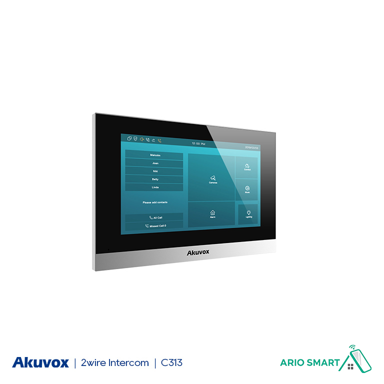 Akuvox C319 یک مانیتور داخلی 10 اینچی اندرویدی با ویژگی های متنوع بوده که برای ارتباط با اینترکام هوشمند درب ساختمان شما طراحی شده و برای استفاده تمامی سنین مناسب است، رابط کاربری آن به طوریست که حتی بچه ها هم استفاده سریع و آسان از آن را به سرعت آموزش میبینند، دارای یک دستیار صوتی هوشمند و همچنین امکان برقراری ارتباط با خانه هوشمند شما را دارد.