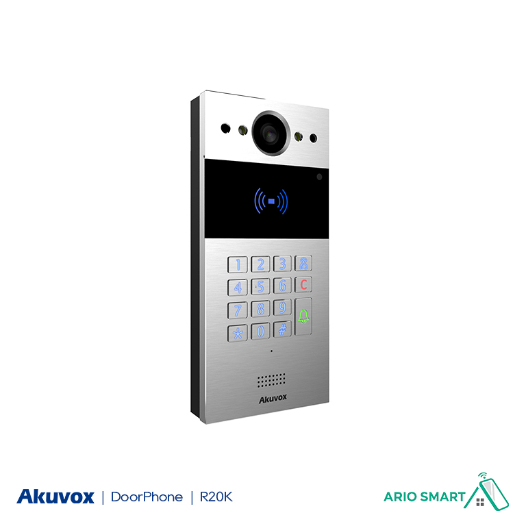 ایفون تصویری هوشمند Akuvox مدل R20K یک اینترکام سازگار با پروتکل SIP است برای نظارت و ارتباط با مراجعین و رفت و آمد ساکنین مورد استفاده قرار می گیرد. کاربران (ساکنین) می توانند از طریق این اینترکام با مراجعین به درب خانه یا محل کار یک تماس صوتی و تصویری دو طرفه با کیفیت بالا برقرار نموده و در صورت نیاز درب را بر روی آنها باز نمایند. کاربران همچنین می توانند از طریق کارت های RFID برای باز کردن قفل درب توسط این اینترکام اقدام نمایند.