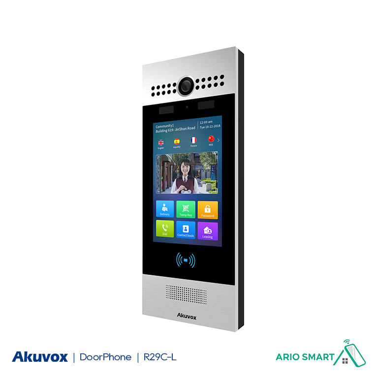 آیفون تصویری هوشمند Akuvox مدل R29C-L هوشمندترین اینترکام کدینگ coding در جهان با قابلیت پشتیبانی و مدیریت از 999 واحد و 3 رله (3 درب) مبتنی بر پروتکل SIP می باشد. صفحه نمایشگر لمسی 7 اینچی طراحی مدرن و منحصر به فردی به این اینترکام بخشیده و به شما امکان جستجوی سریعتر و آسانتر در منوها و فایل ها جهت مدیریت و کنترل تردد را فراهم خواهد کرد.