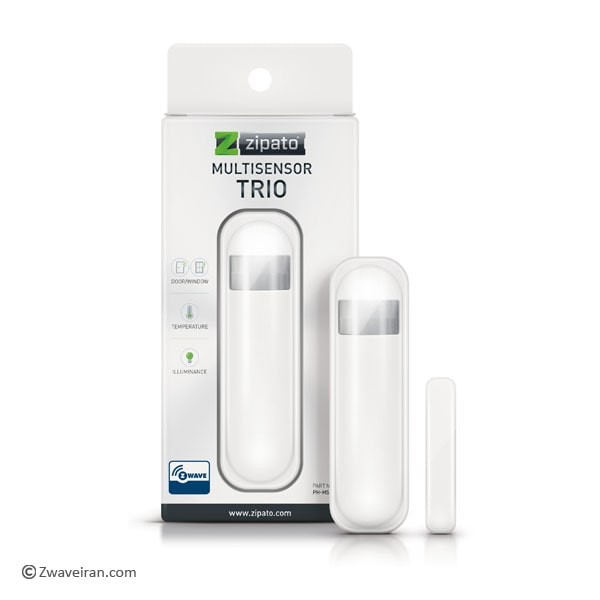 مالتی سنسور Trio زیپاتو Zipato ویژگی های سنسور امنیتی و محیطی دقیق را تنها در یک دستگاه ارائه می کند. قابلیت چندکاره بودن این محصول به شما این امکان را میدهد تا باز و بسته بودن هر درب و پنجره ی مورد نظر و شدت میزان نور و دمای محیط اتاق ها در خانه هوشمند را تشخیص دهید. زمانی که کنترلر هوشمند خانه زیپاتو به کار گرفته شود، میتواند جزئی از هر سناریوی اتوماسیون ایجاد شده در بخش رول نویسی زیپاتو باشد. این سنسور، به طور کلی به منظور سنسور درب و پنجره به کار می رود. و شامل یک حسگر و یک مگنت میباشد که از آن ها روی قاب ثابت درب و پنجره و دیگری روی قسمت باز شونده و متحرک نصب میگردد. در زمان جدا شدن این قسمت ها از یکدیگر، دستگاه گزارش باز بودن درب یا پنجره را ارسال میکند.